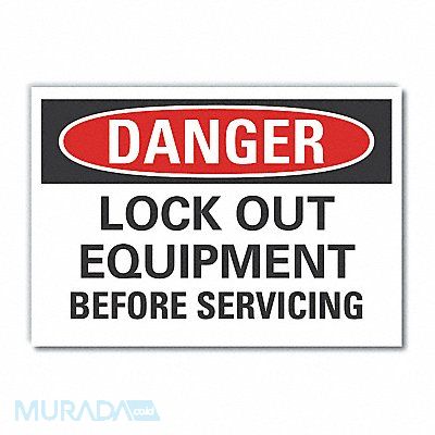 Danger Sign Horizontal Rectangle Number of Printed Sides 1 English Sign Format Traditional OSHA Sign Legend Lock Out Equipment Before Servicing Sign Legend Background Color White Sign Legend Style Text