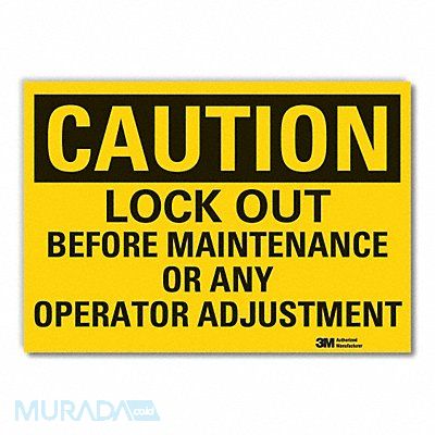 Caution Sign Horizontal Rectangle Number of Printed Sides 1 English Sign Format Traditional OSHA Sign Legend Lock Out Before Maintenance Or Any Operator Adjustment Sign Legend Background Color Yellow Sign Legend Style Text