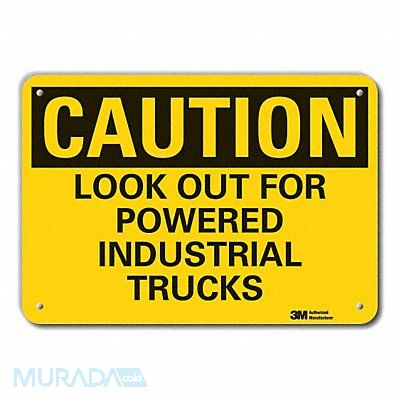 Caution Sign Horizontal Rectangle Number of Printed Sides 1 English Sign Format Traditional OSHA Sign Legend Look Out For Powered Industrial Trucks Sign Legend Background Color Yellow Sign Legend Style Text