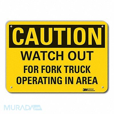 Caution Sign Horizontal Rectangle Number of Printed Sides 1 English Sign Format Traditional OSHA Sign Legend Watch Out For Fork Truck Operating In Area Sign Legend Background Color Yellow Sign Legend Style Text