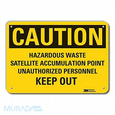 Caution Sign Horizontal Rectangle Number of Printed Sides 1 English Sign Format Traditional OSHA Sign Legend Hazardous Waste Satellite Accumulation Point Unauthorized Personnel Keep Out Sign Legend Background Color Yellow Sign Legend Style Text