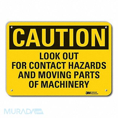 Caution Sign Vertical Rectangle Number of Printed Sides 1 English Sign Format Traditional OSHA Sign Legend Look Out For Contact Hazards And Moving Parts Of Machinery Sign Legend Background Color Yellow Sign Legend Style Text