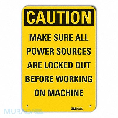 Caution Sign Horizontal Rectangle Number of Printed Sides 1 English Sign Format Traditional OSHA Sign Legend Make Sure All Power Sources Are Locked Out Before Working On Machine Sign Legend Background Color Yellow Sign Legend Style Text