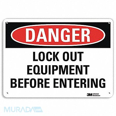 Danger Sign Horizontal Rectangle Number of Printed Sides 1 English Sign Format Traditional OSHA Sign Legend Lock Out Equipment Before Entering Sign Legend Background Color White Sign Legend Style Text