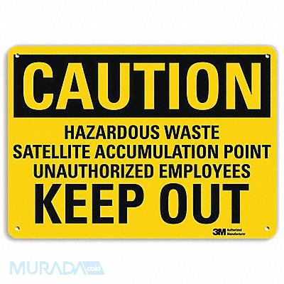 Caution Sign Vertical Rectangle Number of Printed Sides 1 English Sign Format Traditional OSHA Sign Legend Hazardous Waste Satellite Accumulation Point Unauthorized Employees Keep Out Sign Legend Background Color Yellow Sign Legend Style Text