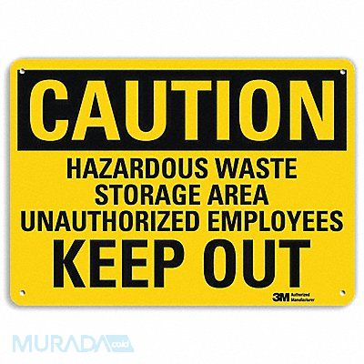 Caution Sign Vertical Rectangle Number of Printed Sides 1 English Sign Format Traditional OSHA Sign Legend Hazardous Waste Storage Area. Unauthorized Employees Keep Out. Sign Legend Background Color Yellow Sign Legend Style Text