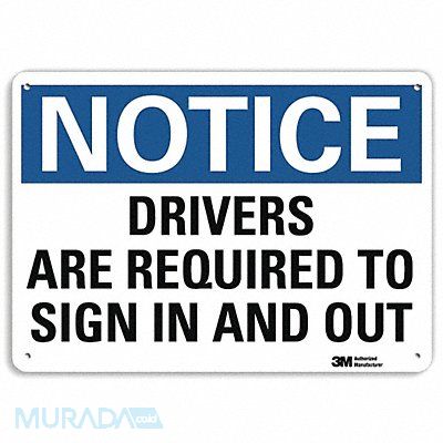 Non-reflective Loadiing Unloading Sign Horizontal Rectangle Number of Printed Sides 1 English Sign Format Traditional OSHA Sign Legend Drivers are Required to Sign In and Out Sign Legend Background Color White Sign Legend Style Text
