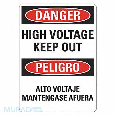 Facility Sign Vertical Rectangle Number of Printed Sides 1 English Sign Format Traditional OSHA Sign Legend High Voltage Keep Out/Alto Voltaje Mantengase Afuera Sign Legend Background Color White Sign Legend Style Text