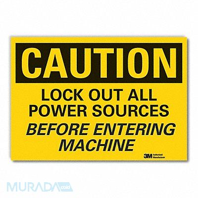 Caution Sign Horizontal Rectangle Number of Printed Sides 1 English Sign Format Traditional OSHA Sign Legend Lock Out All Power Sources Before Entering Machine Sign Legend Background Color Yellow Sign Legend Style Text