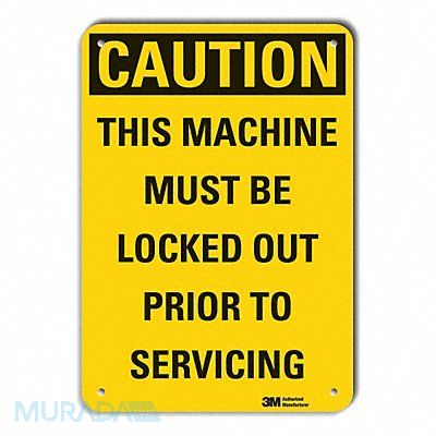 Reflective Lockout Tagout Caution Sign Vertical Rectangle Number of Printed Sides 1 English Sign Format Traditional OSHA Sign Legend This Machine Must Be Locked Out Prior To Servicing Sign Legend Background Color Yellow Sign Legend Style Text