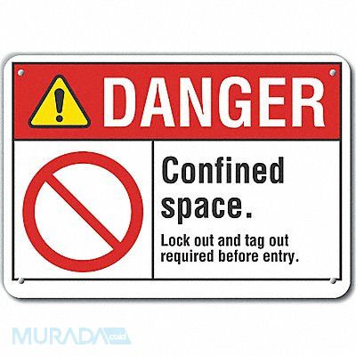 Reflective Confined Space Danger Sign Horizontal Rectangle Number of Printed Sides 1 English Sign Format ANSI/OSHA Format Sign Legend Confined Space. Lock Out And Tag Out Required Before Entry. Sign Legend Background Color White Sign Legend Style Symbol and Text