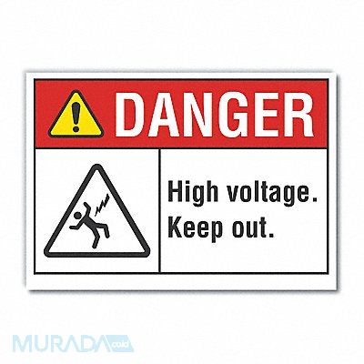 High Voltage Danger Label Vertical Rectangle Number of Printed Sides 1 English Sign Format ANSI/OSHA Format Sign Legend High Voltage. Keep Out. Sign Legend Background Color White Sign Legend Style Symbol and Text
