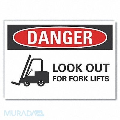 Lift Truck Traffic Danger Label Horizontal Rectangle Number of Printed Sides 1 English Sign Format ANSI/OSHA Format Sign Legend Look Out For Fork Lifts Sign Legend Background Color White Sign Legend Style Symbol and Text