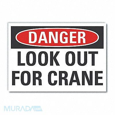 Crane Hoists Danger Reflective Label Horizontal Rectangle Number of Printed Sides 1 English Sign Format Traditional OSHA Sign Legend Look Out For Crane Sign Legend Background Color White Sign Legend Style Text