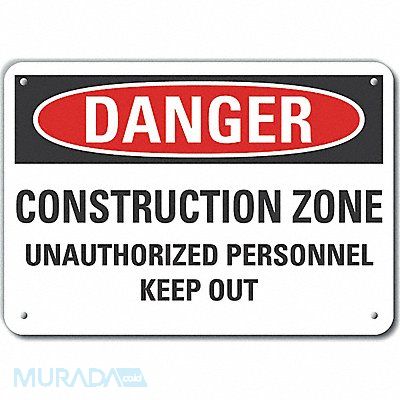 Aluminum Construction Area Danger Sign Vertical Rectangle Number of Printed Sides 1 English Sign Format Traditional OSHA Sign Legend Construction Zone Unauthorized Personnel Keep Out Sign Legend Background Color White Sign Legend Style Text