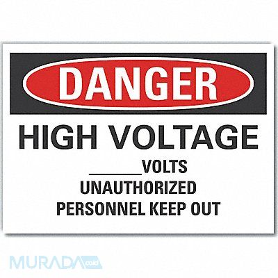 High Voltage Danger Reflective Label Horizontal Rectangle Number of Printed Sides 1 English Sign Format Traditional OSHA Sign Legend High Voltage ___Volts Unauthorized Personnel Keep Out Sign Legend Background Color White Sign Legend Style Text