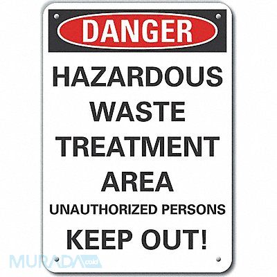 Aluminum Hazardous Waste Danger Sign Horizontal Rectangle Number of Printed Sides 1 English Sign Format Traditional OSHA Sign Legend Hazardous Waste Treatment Area Unauthorized Persons Keep Out! Sign Legend Background Color White Sign Legend Style Text
