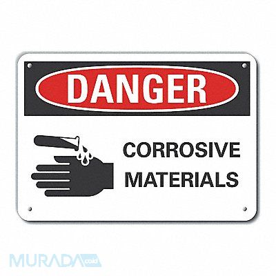 Plastic Corrosive Materials Danger Sign Vertical Rectangle Number of Printed Sides 1 English Sign Format ANSI/OSHA Format Sign Legend Corrosive Materials Sign Legend Background Color White Sign Legend Style Symbol and Text