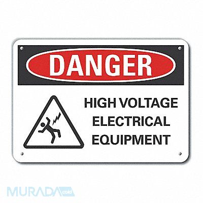 Danger Sign Horizontal Rectangle Number of Printed Sides 1 English Sign Format ANSI/OSHA Format Sign Legend High Voltage Electrical Equipment Sign Legend Background Color White Sign Legend Style Symbol and Text