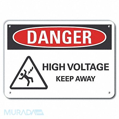 Plastic High Voltage Danger Sign Horizontal Rectangle Number of Printed Sides 1 English Sign Format ANSI/OSHA Format Sign Legend High Voltage Keep Away Sign Legend Background Color White Sign Legend Style Symbol and Text