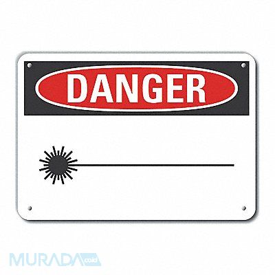 Plastic Laser Area Danger Sign Horizontal Rectangle Number of Printed Sides 1 English Sign Format ANSI/OSHA Format Sign Legend Laser Symbol Sign Legend Background Color White Sign Legend Style Symbol