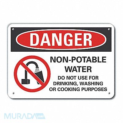Danger Sign Horizontal Rectangle Number of Printed Sides 1 English Sign Format ANSI/OSHA Format Sign Legend Non-Potable Water Do Not Use For Drinking Washing Or Cooking Purposes Sign Legend Background Color White Sign Legend Style Symbol and Text