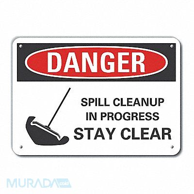 Plastic Spill Control Danger Sign Horizontal Rectangle Number of Printed Sides 1 English Sign Format ANSI/OSHA Format Sign Legend Spill Cleanup In Progress Stay Clear Sign Legend Background Color White Sign Legend Style Symbol and Text