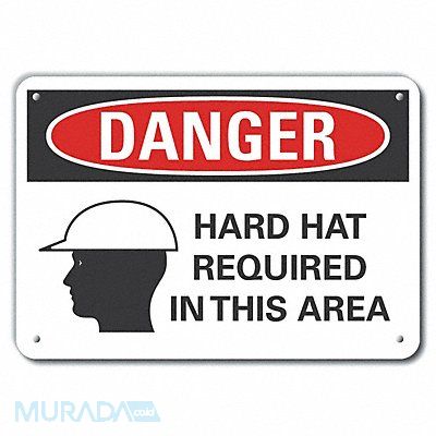 Plastic Hard Hat Danger Sign Vertical Rectangle Number of Printed Sides 1 English Sign Format ANSI/OSHA Format Sign Legend Hard Hat Required In This Area Sign Legend Background Color White Sign Legend Style Symbol and Text