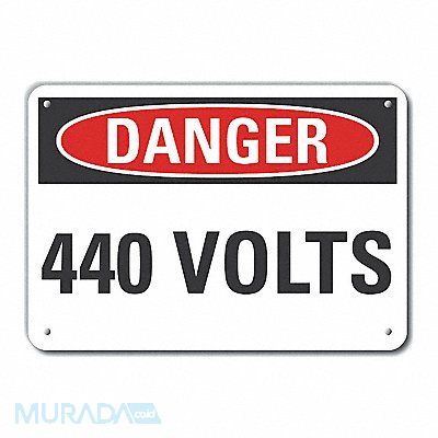 Plastic Voltage Danger Sign Horizontal Rectangle Number of Printed Sides 1 English Sign Format Traditional OSHA Sign Legend 440 Volts Sign Legend Background Color White Sign Legend Style Text