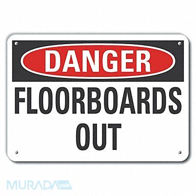 Plastic Accident Prevention Danger Sign Horizontal Rectangle Number of Printed Sides 1 English Sign Format Traditional OSHA Sign Legend Floorboards Out Sign Legend Background Color White Sign Legend Style Text