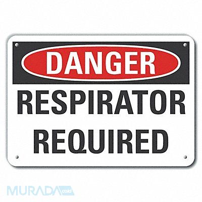 Plastic Respirator Required Danger Sign Vertical Rectangle Number of Printed Sides 1 English Sign Format Traditional OSHA Sign Legend Respirator Required Sign Legend Background Color White Sign Legend Style Text