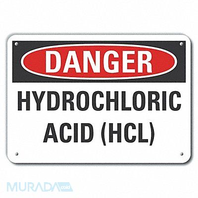 Danger Sign Vertical Rectangle Number of Printed Sides 1 English Sign Format Traditional OSHA Sign Legend Hydrochloric Acid (Hcl) Sign Legend Background Color White Sign Legend Style Text