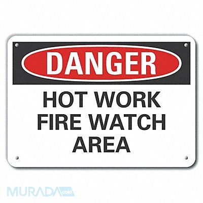 Plastic Hot Work Area Danger Sign Horizontal Rectangle Number of Printed Sides 1 English Sign Format Traditional OSHA Sign Legend Hot Work Fire Watch Area Sign Legend Background Color White Sign Legend Style Text