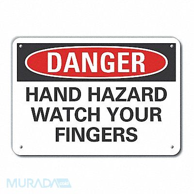 Plastic Machine Operation Danger Sign Vertical Rectangle Number of Printed Sides 1 English Sign Format Traditional OSHA Sign Legend Hand Hazard Watch Your Fingers Sign Legend Background Color White Sign Legend Style Text
