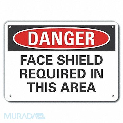 Danger Sign Horizontal Rectangle Number of Printed Sides 1 English Sign Format Traditional OSHA Sign Legend Face Shield Required In This Area Sign Legend Background Color White Sign Legend Style Text