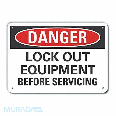 Plastic Lockout Tagout Danger Sign Horizontal Rectangle Number of Printed Sides 1 English Sign Format Traditional OSHA Sign Legend Lock Out Equipment Before Servicing Sign Legend Background Color White Sign Legend Style Text