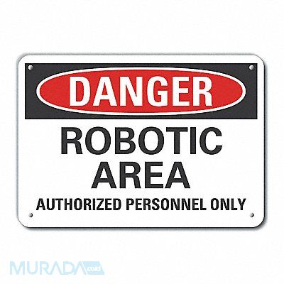 Plastic Robot Area Danger Sign Horizontal Rectangle Number of Printed Sides 1 English Sign Format Traditional OSHA Sign Legend Robotic Area Authorized Personnel Only Sign Legend Background Color White Sign Legend Style Text