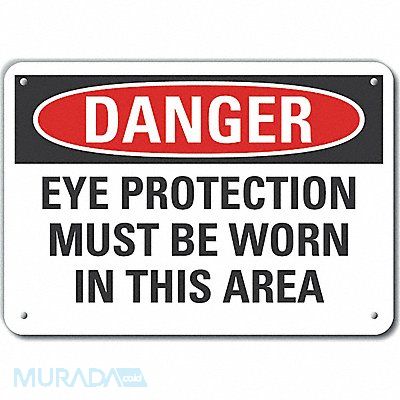 Plastic Eye Danger Sign Horizontal Rectangle Number of Printed Sides 1 English Sign Format Traditional OSHA Sign Legend Eye Protection Must Be Worn In This Area Sign Legend Background Color White Sign Legend Style Text