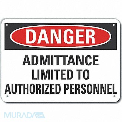 Plastic Authorized Personnel Danger Sign Horizontal Rectangle Number of Printed Sides 1 English Sign Format Traditional OSHA Sign Legend Admittance Limited To Authorized Personnel Sign Legend Background Color White Sign Legend Style Text