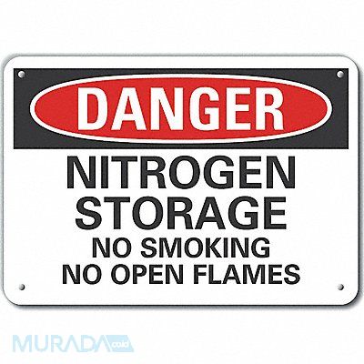 Plastic Nitrogen Danger Sign Horizontal Rectangle Number of Printed Sides 1 English Sign Format Traditional OSHA Sign Legend Nitrogen Storage No Smoking No Open Flames Sign Legend Background Color White Sign Legend Style Text