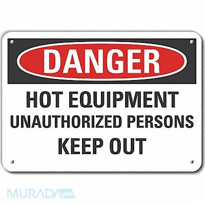 Plastic Hot Danger Sign Vertical Rectangle Number of Printed Sides 1 English Sign Format Traditional OSHA Sign Legend Hot Equipment Unauthorized Persons Keep Out Sign Legend Background Color White Sign Legend Style Text