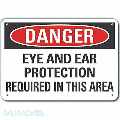 Danger Sign Vertical Rectangle Number of Printed Sides 1 English Sign Format Traditional OSHA Sign Legend Eye And Ear Protection Required In This Area Sign Legend Background Color White Sign Legend Style Text