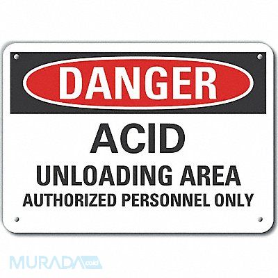 Plastic Acid Danger Sign Vertical Rectangle Number of Printed Sides 1 English Sign Format Traditional OSHA Sign Legend Acid Unloading Area Authorized Personnel Only Sign Legend Background Color White Sign Legend Style Text