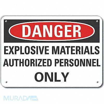Plastic Explosive Materials Danger Sign Horizontal Rectangle Number of Printed Sides 1 English Sign Format Traditional OSHA Sign Legend Explosive Materials Authorized Personnel Only Sign Legend Background Color White Sign Legend Style Text