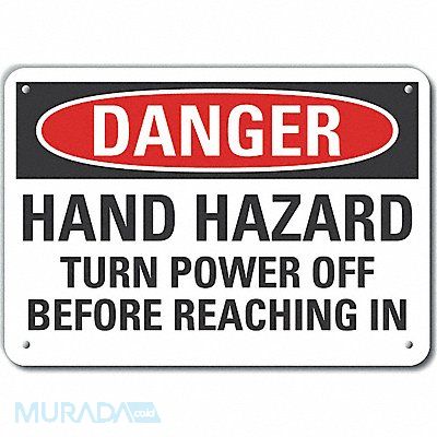 Plastic Machine Operation Danger Sign Horizontal Rectangle Number of Printed Sides 1 English Sign Format Traditional OSHA Sign Legend Hand Hazard Turn Power Off Before Reaching In Sign Legend Background Color White Sign Legend Style Text