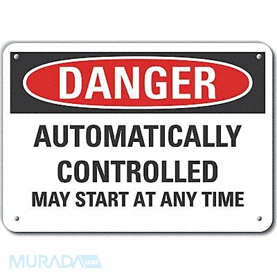 Plastic Automatic Equipment Danger Sign Horizontal Rectangle Number of Printed Sides 1 English Sign Format Traditional OSHA Sign Legend Automatically Controlled May Start At Any Time Sign Legend Background Color White Sign Legend Style Text