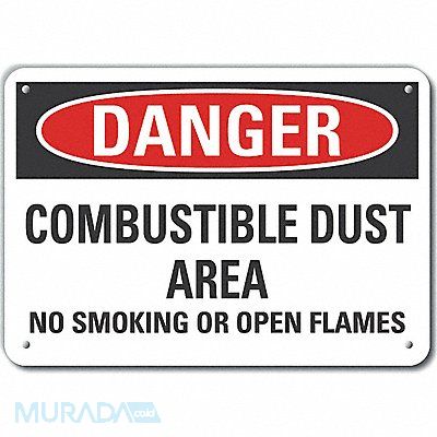Plastic Combustible Dust Danger Sign Vertical Rectangle Number of Printed Sides 1 English Sign Format Traditional OSHA Sign Legend Combustible Dust Area No Smoking Or Open Flames Sign Legend Background Color White Sign Legend Style Text