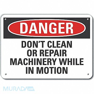 Plastic Machine Operation Danger Sign Vertical Rectangle Number of Printed Sides 1 English Sign Format Traditional OSHA Sign Legend Don t Clean Or Repair Machinery While In Motion Sign Legend Background Color White Sign Legend Style Text