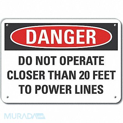 Plastic Electrical Hazard Danger Sign Vertical Rectangle Number of Printed Sides 1 English Sign Format Traditional OSHA Sign Legend Do Not Operate Closer Than 20 Feet To Power Lines Sign Legend Background Color White Sign Legend Style Text