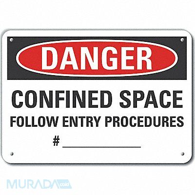 Plastic Confined Space Danger Sign Horizontal Rectangle Number of Printed Sides 1 English Sign Format Traditional OSHA Sign Legend Confined Space Follow Entry Procedures #______ Sign Legend Background Color White Sign Legend Style Text
